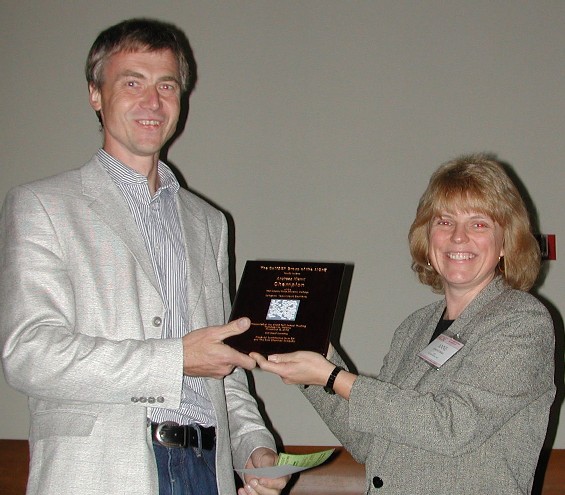 Andreas Klamt (Cosmologic) receives the award from Anne Chaka (NIST) of the Fluid Simulation Challenge committee