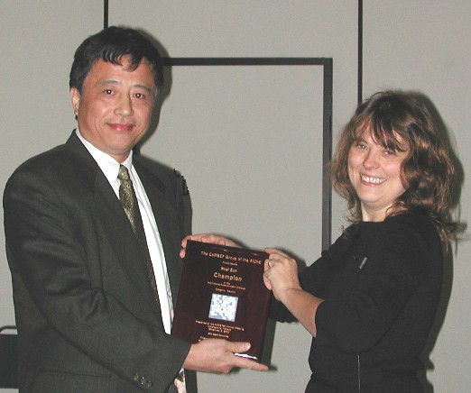 Huai Sun (Aeon) receives the award from Fiona Case (Colgate Palmolive) of the Fluid Simulation Challenge committee